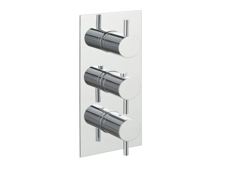 JTP presents Fonti featuring a Chrome Thermostatic concealed outlet shower valve. Option of Outlet 2 or 3 Thermostat as well as a designer handle option.