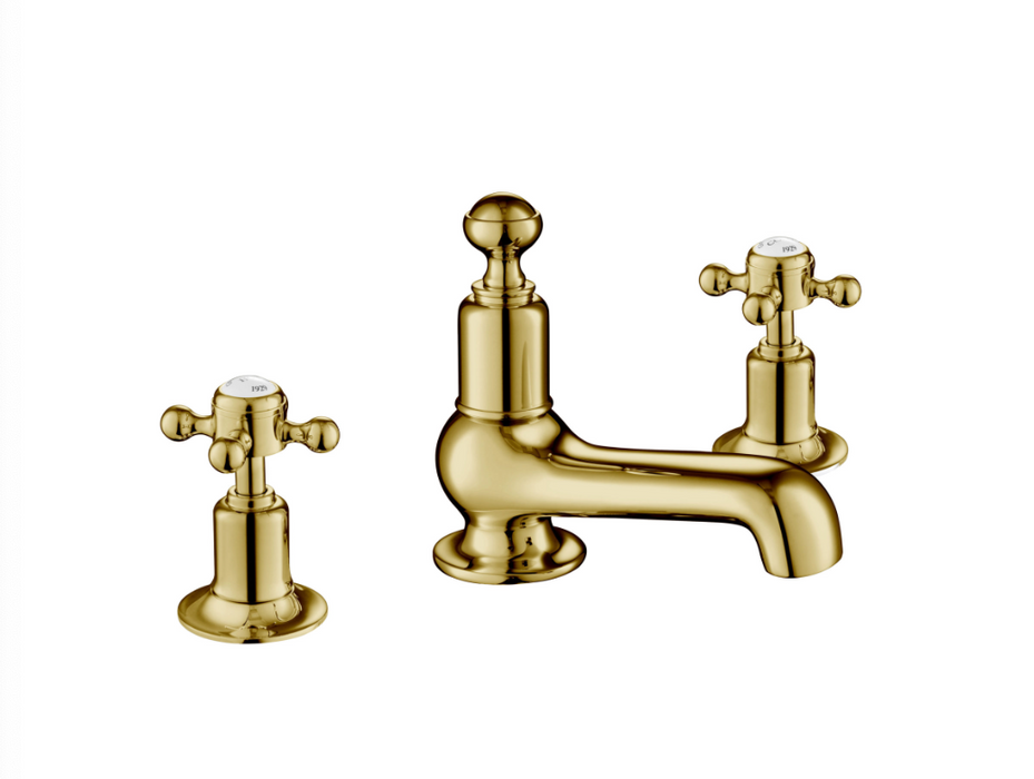 JTP Grosvenor Cross Antique Brass Edition 3 Hole Basin Mixer Deck Mounted