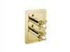 JTP presents the Grosvenor range featuring the antique brass edition cross lever thermostatic concealed outlet shower valve, vertical available in 1 or 2 outlets.