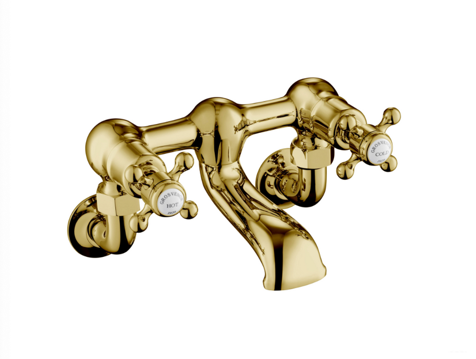 JTP presents the Grosvenor range featuring the cross antique brass edition wall mounted bath filler.