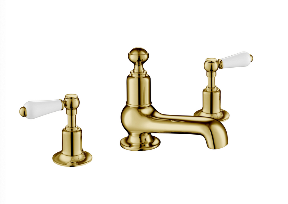 JTP Grosvenor Pinch Antique Brass Edition Deck Mounted 3 Hole Basin Mixer