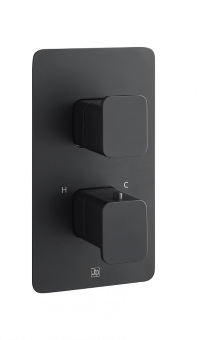 JTP HIX Noir Matt Black Thermostatic Concealed 2 Outlet Shower Valve