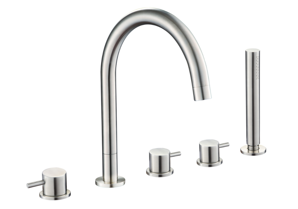 JTP presents the Inox range featuring a pure stainless steel 5 hole bath shower mixer with extractable pull out hand shower and diverter.