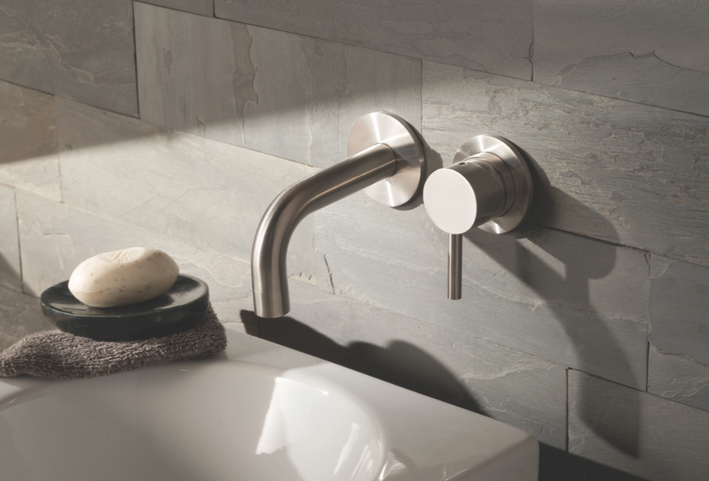 JTP presents Inox range featuring a wall mounted basin mixer in 250mm or 155mm.