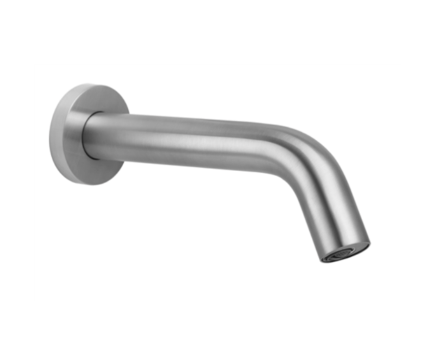 JTP presents the Sensor range featuring the Stainless Steel react sensor wall spout mains/battery operated without pop up waste.