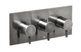The VOS Horizontal Brushed Black Thermostatic Concealed 3 Outlet Shower Valve features a minimalist Brushed Black finish round design perfect for a concealed arrangement for a shower.