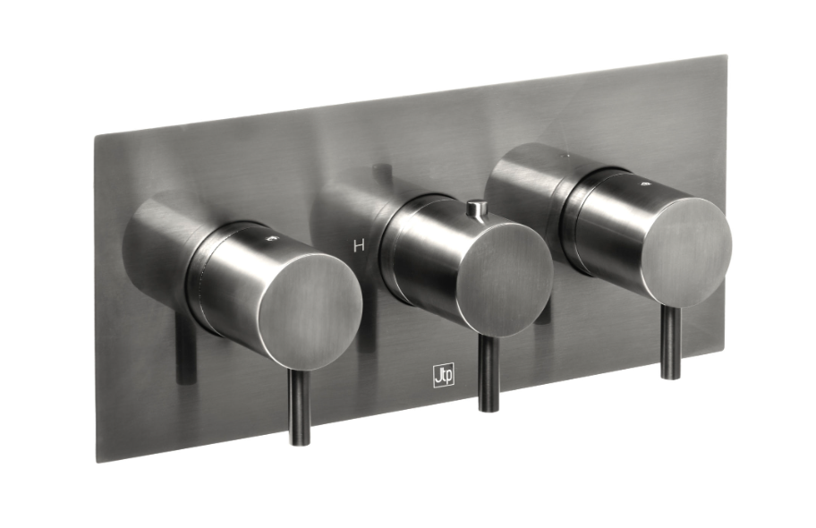 JTP VOS Horizontal Brushed Black Thermostatic Concealed 3 Outlet Shower Valve - Select Design