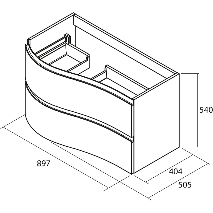 - This new curved series has high-performance metal drawers with a width of 900mm.