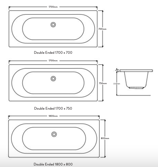Round Double Ended Acrylic Bath 1700 x 750mm