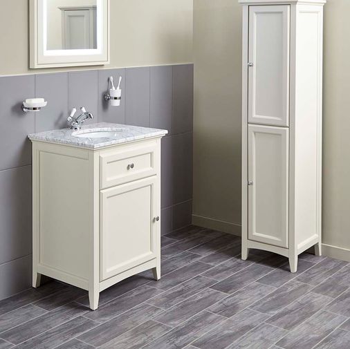 If you favour a classic approach to your bathroom design, the Savoy old English single door unit & solid marble top with a ceramic under counter basin offers a more traditional touch. The vanity unit has an old English white finish which is not meant to match our white sanitaryware. Instead, it is designed to give your bathroom a sense of classic colour and elegance which doesn‰۪t clash alongside your other bathroom fittings.
