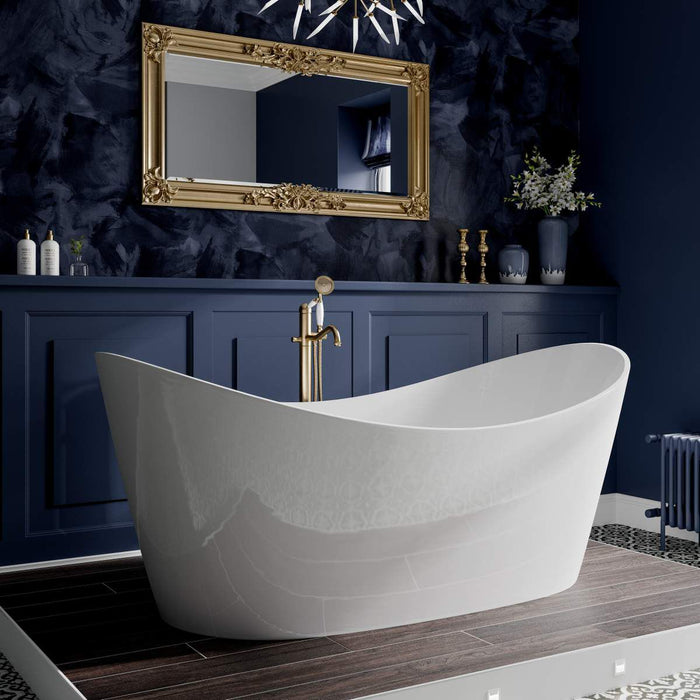 Measuring 590mm at the deepest point, this is a bath that invites a long, deep soak to unwind after a day of work or sport. Please note that due to its shape and design, the Emerald Slipper Bath cannot be paired with deck-mounted taps and requires a floor-standing bath filler or wall mounted taps.