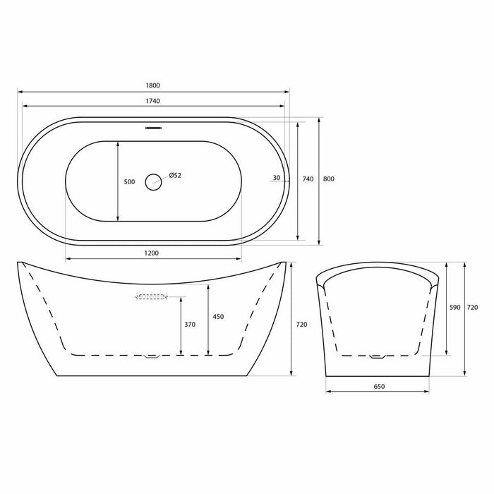 Trojan Emerald Contemporary Oval Bath with Waste 1800 x 800mm