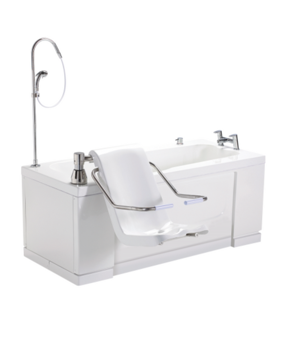 Powered seat traverse effortlessly transfers the bather into and out of the bath. Featuring integrated BioCote anti-microbial technology as standard. Innovative keyhole design reduces water usage whilst retaining wide seating area ensuring optimum comfort for bathers Easy-to-clean seat with nursing arms and integrated pommel offers enhanced support.