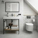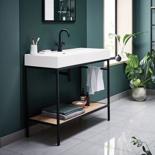 The Noir Frame 1000 unit and basin offers simplicity, style and practicality. The matt black aluminium frame provides a sleek, minimalist and industrial look. The beautiful African oak shelf adds warmth and contrast and the slimline fitted Veneto basin introduces a touch of elegance. As part of our Noir range, it can also be mixed and matched with taps and bottle traps to create a stunning coordinated display. At 1000mm wide, this is the largest frame unit and basin available in our Noir range.